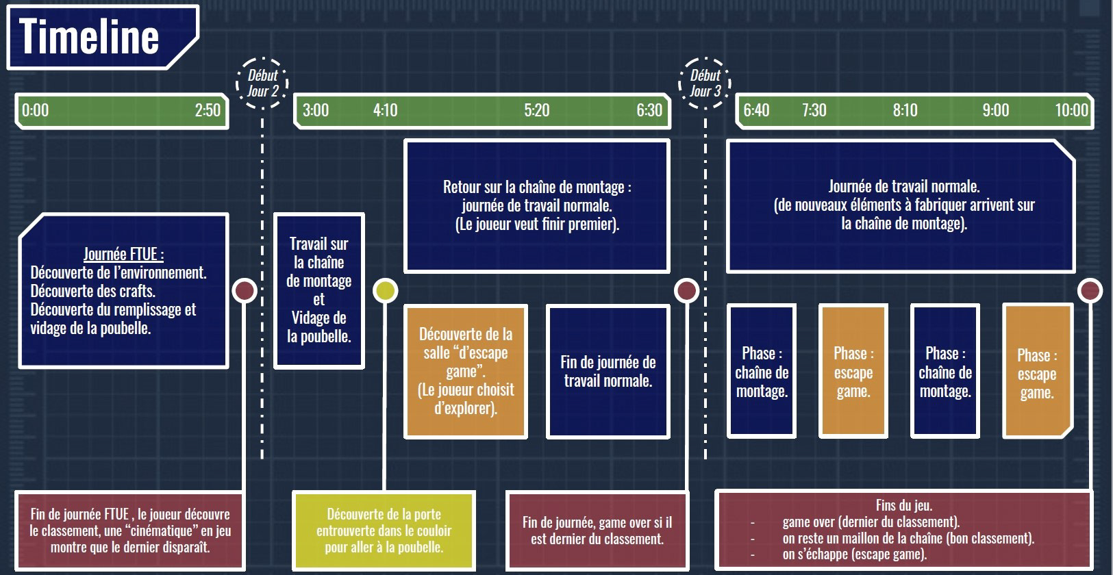 Ainsi je suis co-auteur des documents de game design et plus particulièrement de la Timeline des évènements, mais également du Game Concept Document.