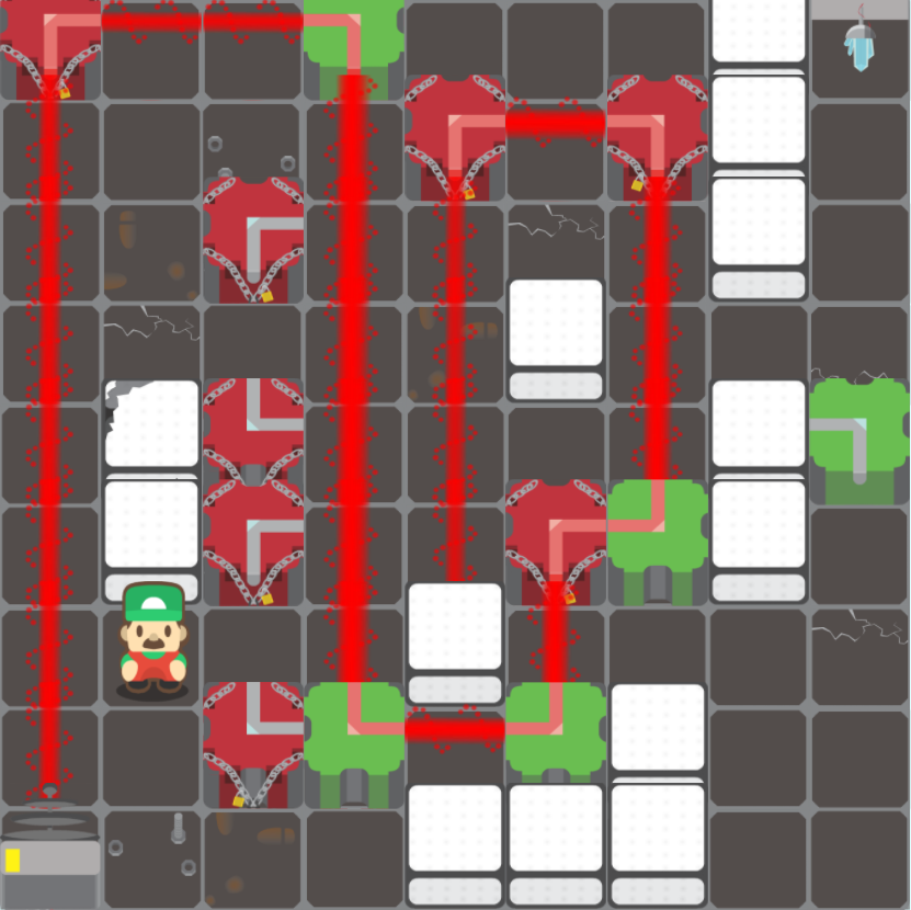 Afin de simplifier l'action, et principalement sur mobile, un pathfinding a été mis en place, j'ai participé à ses réglages et son adaptation avec le laser bloquant une partie des déplacements.