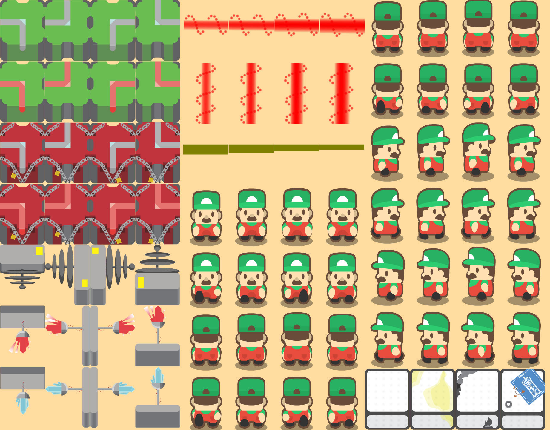 J'ai également réalisé sous Adobe Illustrator puis animé sous Adobe Animate l'ensemble des éléments composant le niveau, à l'exception du personnage pour lequel je n'ai créé que ses animations de marche et idle.