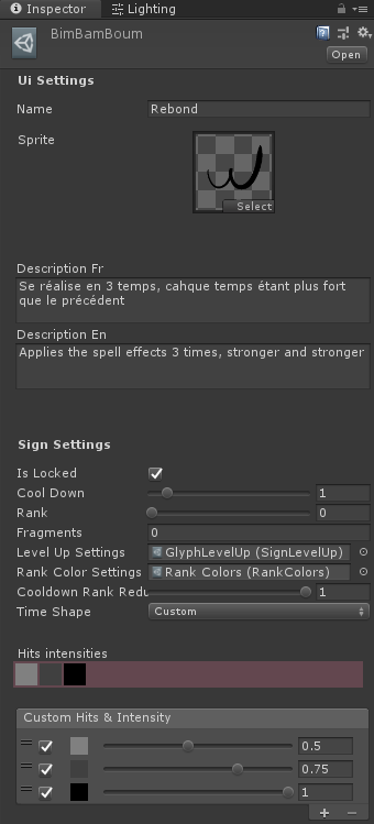 Les ScriptableObjects jouent un gros rôle, j'ai également développé plusieurs outils utilisant un simple bouton pour rajouter toutes les glyphes nouvellement créés au jeu sans étape supplémentaire.
