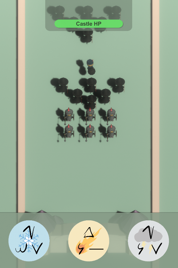 Avec comme contrainte de réaliser un Free To Play, Spell Caster est un jeu mobile dans lequel des séries de vagues d'ennemies parcourent l'écran jusqu'à atteindre le château en bas de l'écran.